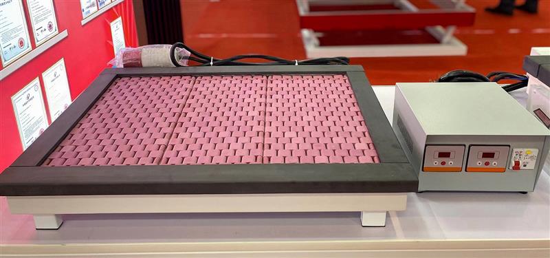 特点:工作面规格300×400(mm)。操作灵活方便、升温快,梯度控温,峰值温度500℃/700℃。,绝缘保护,不露丝,无明火,无火灾隐患。可直接使用也可与碳化硅板结合使用,使温度的均匀性、防腐蚀性都达到的效果。